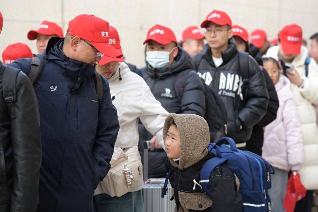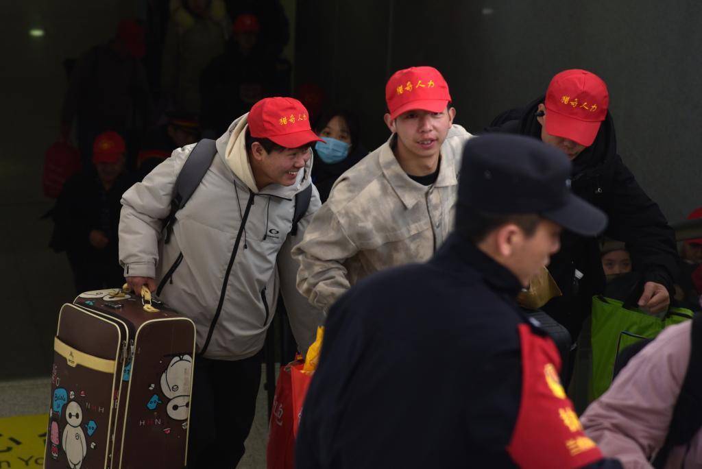 2月25日10时45分,在甘肃省定西市定西北站,来自定西市的500余名务工东说念主员,搭乘G2096次高铁务工专列赶赴山东省青岛市。这是甘肃省春节后开行的首趟返岗务工专列。
